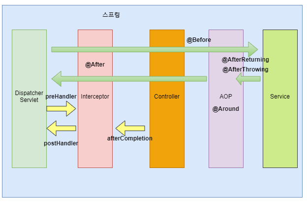 추가적으로 AOP는 서비스 메소드 전후에만 추가되는 것이 아니라 컨트롤러 메소드 전후에도 추가 될수 있습니다.